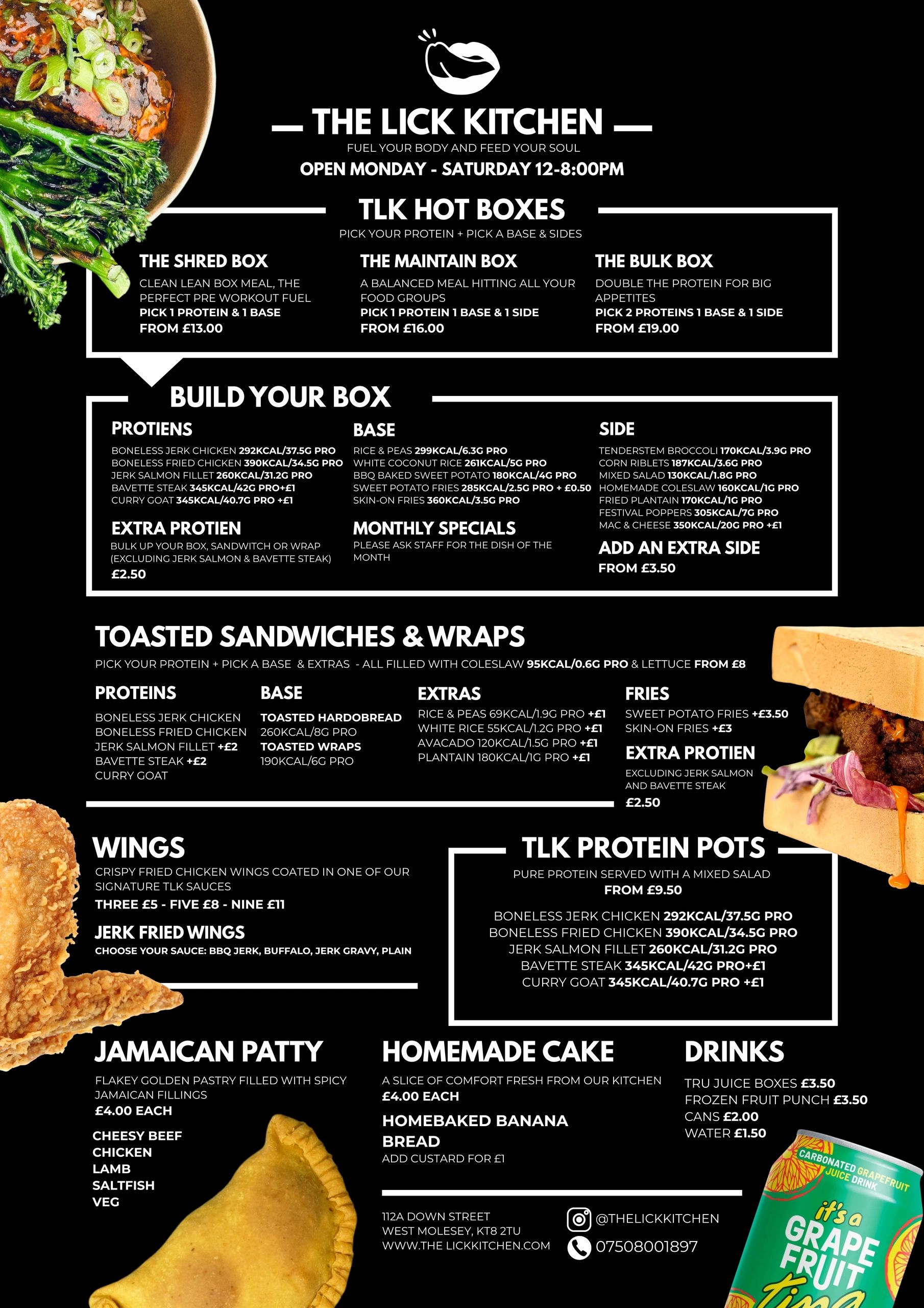 The Lick Kitchen serves up Caribbean BBQ with balance.. Our food is cooked the proper way - over hot coal with spice, and plenty of love. From Jerk Chicken smoked low and slow to tender boneless Curry Goat, juicy Bavette Steak and Jerk Salmon fresh off the pan. Every dish is bold, hearty and packed with flavour This is real food made fresh every day to fuel your body and feed your soul.